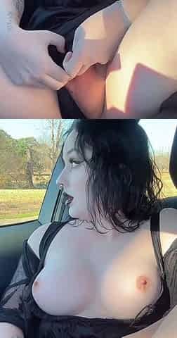 thick goth girl plays with herself in car