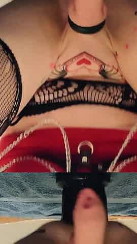 Big Dick Femboy Emo Jerking His Cock and Cumming After Fingering Her Ass and Slap Her Fat Tits