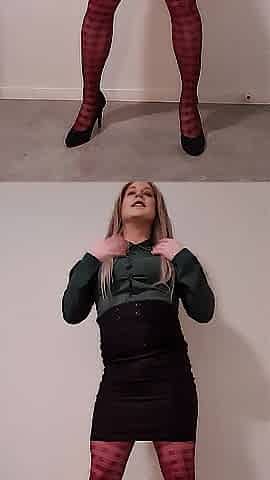 Crossdresser in Underware Screws Tiny Trans Woman in Ebony Suit