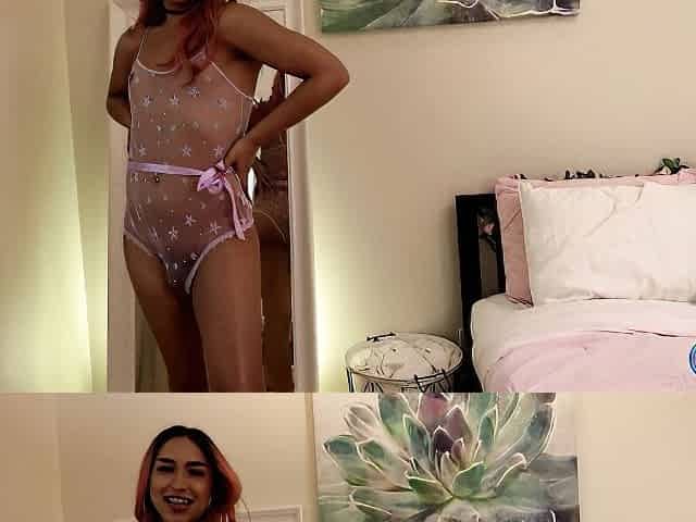 Blonde Latina Trans Vivian Masturbates with a Toy in Her Tight Asshole