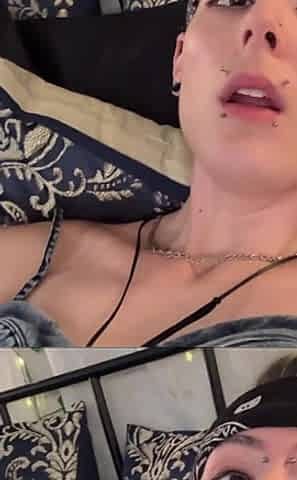 Tattood shemale tranny plays with ass during masturbation