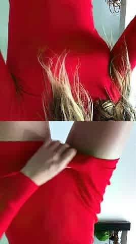 Dani Berry Standing Masturbation In Red Dress