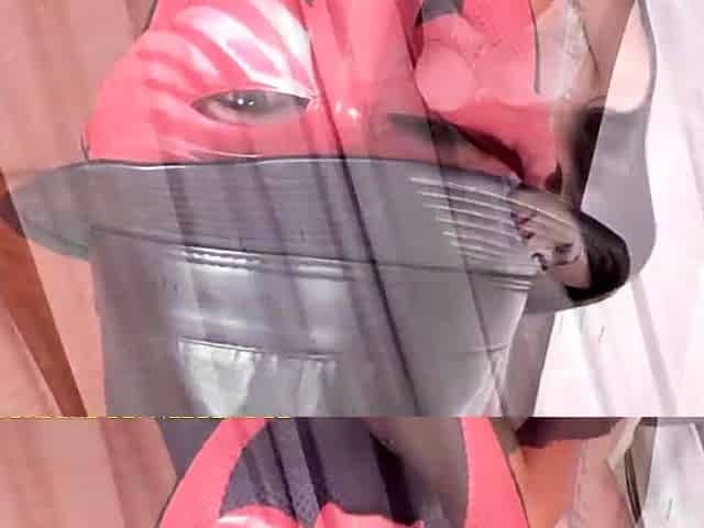 Tiny ladyboy in pink pantyhose blowjobs big cock