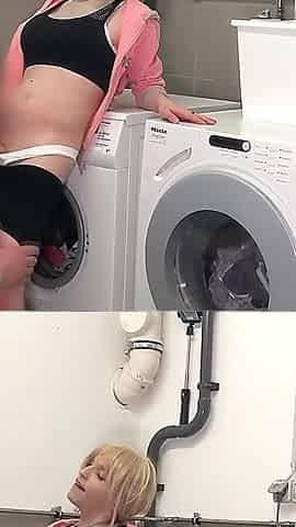 Fucked by Neighbor in Laundry Room! Hot Tranny Sex!! Double Cumshot!