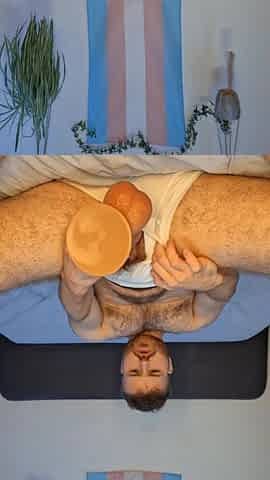 Hairy Muscular Ftm Trans Man Riding Big Dildo and Squirting