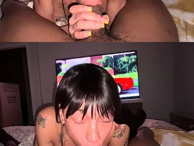 Shemale tranny gets blowjob before sucking