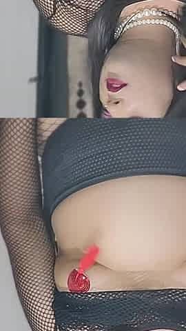 With a Finger in the Ass with a Chastity Belt on Slena Naked Crossdresser Whore for You and Webcam