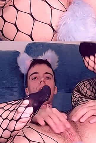 Gorgeous femboy fingering and toying her ass