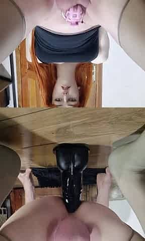 Sissy in a cockcage riding their new favorite horsey on camera