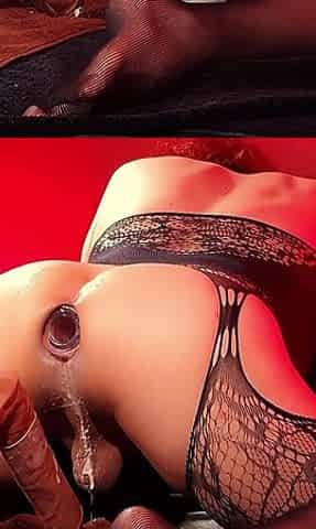 Sissi Stacy Hot Bodystocking and Deep Anal Fisting by Huge BBC Dildo