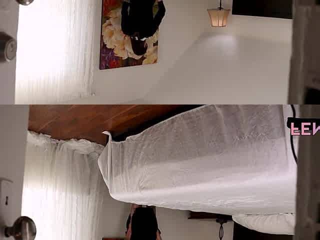 Stepsister Cheating in Her Private Room in Red Mini Skirt White Legs.