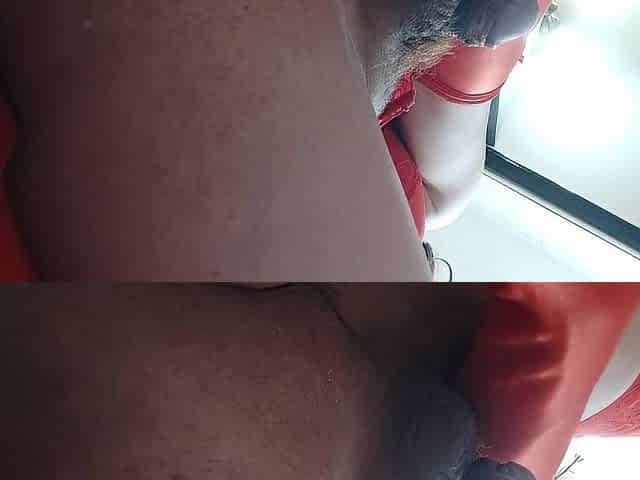 Hawt Oriental Ladyboy Sissy in super red underware playing with large toy and peeing and cumming