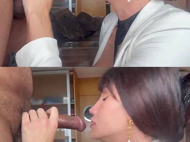 Pretty oriental tranwoman masturbates with her GIANT lady stick and CUM!
