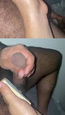 Trans hotty shows off her cute feet and milks her jock