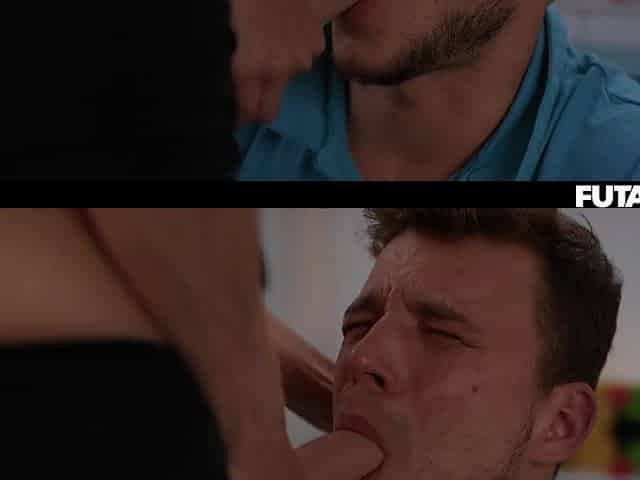 Teen tranny gets her butt banged by a stud with large knob after unfathomable throat bang