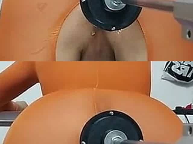 Wearing Orange Sexy Stockings, the Machine Fucked Her Asshole Until She Cums