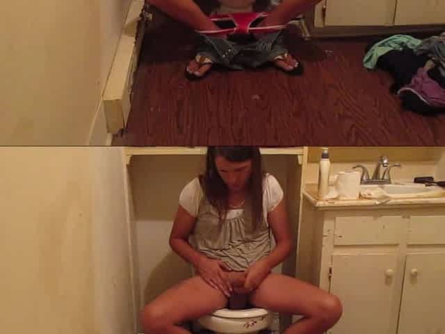 Sissy Using Bathroom at Friends House Makes Her Self Cum a Mess Everywhere