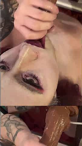 Emo Trans Beauty Sucks a Squirting Sex-toy to cum-pletion
