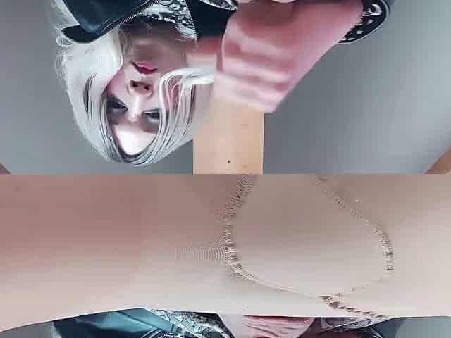 Slender ladyboy with high heels gets a spunk fountain on her tiny