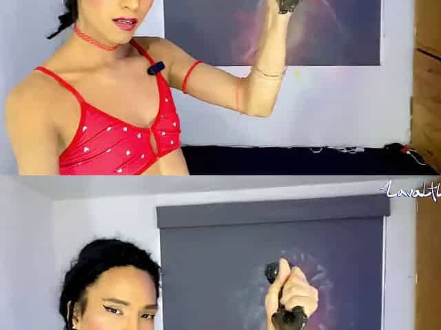 overweight trans angel has loud groans during the time that fitting a vibrator in her booty