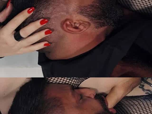 Shemale cums sluts face, Shemale cums sluts face after getting ass rimmed and toyed