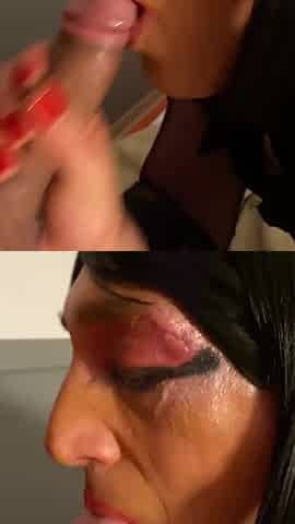 Mature casting redhead TS gets cum in mouth