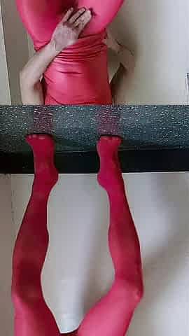 LARGE ROD Tranny in red cumming over Nylon Hose