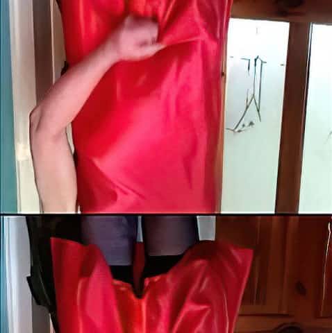 Cum while wearing red satin slip and bloomers