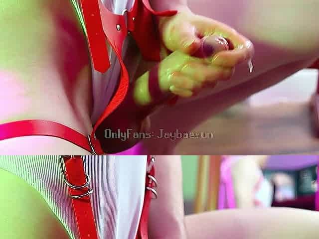 Jasmin Shemale Tgirl Crossdress Masturbating and Big Thick Cum Splash