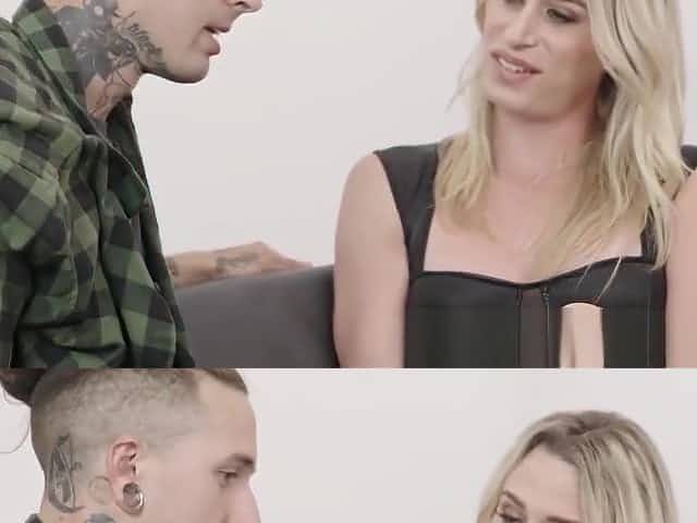 Lovely tranny Kelly Shore in passionate blowjob nad cum feast
