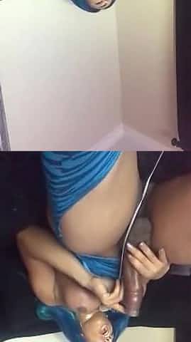 Blue hair hard cock tgirl cums