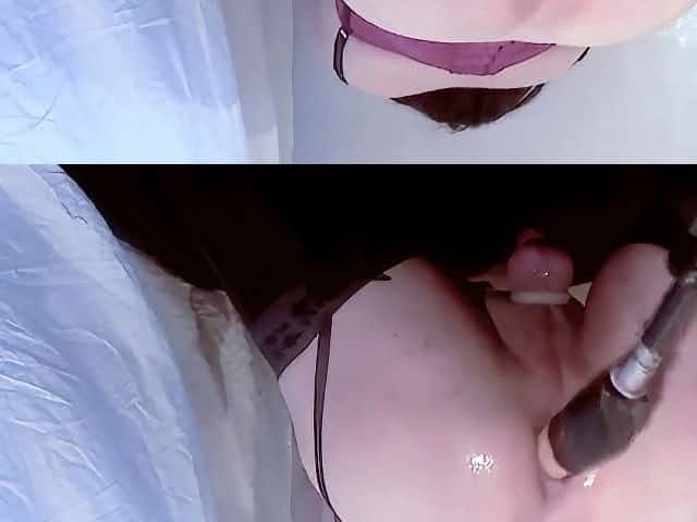 Sissy sucks, deepthroat, fuck fucking machine eats own cum