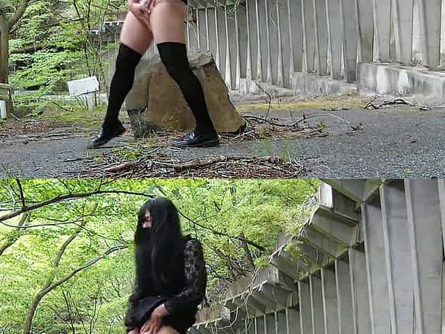 Skirtless kinky masturbatory jizz flow and lascivious urination in the forest