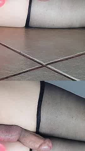 Handless Big Cumshot Femboy Big Ass Crossdresser Cumming Cute Pretty Cock Hard Masturbating Between Legs Sweet Load of Cum
