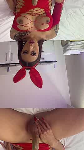 My Body Is Shiny From Body Lotion, My Sexy Dress Is Pinned to My Big Breasts and My Dildo Is Fucking Me Nonstop Until I Cum