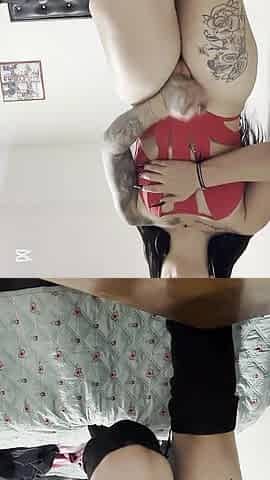 Trans Girl in Sexy Lingerie Jerks off and Shoots Huge Load