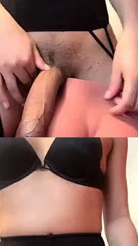 Delicious trap wanking and stroking her big cock