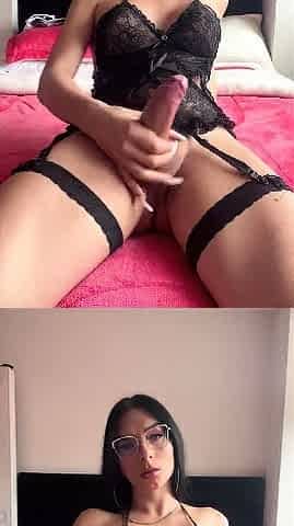 Delicious trap wanking and stroking her big cock