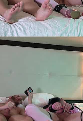 Guy Gets Anal Fucked by Shemale and Girl in a Threesome