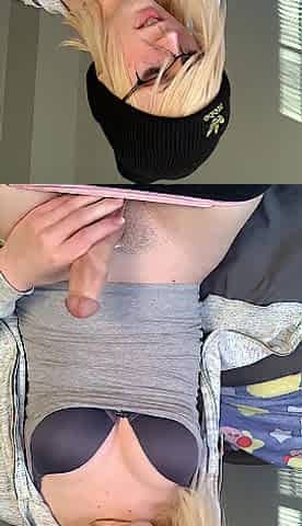 Blonde hottie sucks massive shemale cock eagerly