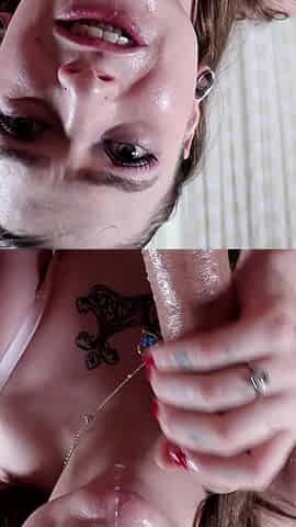 Cute TS Gal Strokes Large Shlong, Cums and Licks it Up