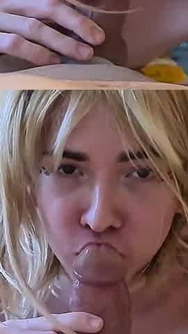 Blonde Trap Sucking on His Big Dick and Swallowing His Big Juicy Load - Prettyboi2000x