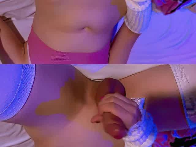 Cute Trans Woman Pastelle in Nylons Costume Shows off Butt and masturbates using a fleshlight