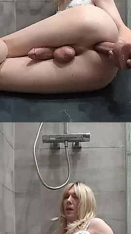 overweight trans enby has pleasure in the shower with fresh toys