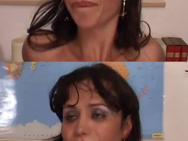 Sissy bitch Hornyandrea clothed as wicked Secretary