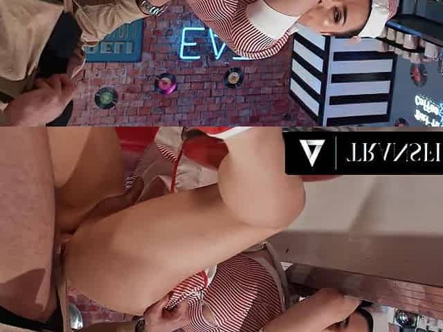 Big Cock in the Ass of a Wild Transgender Brunette