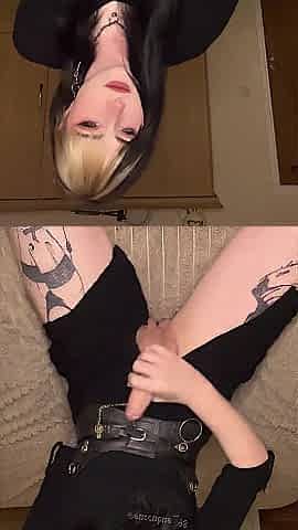 Trans Bonnie pumps her hard schlong whilst teasing her teats and licking her lips