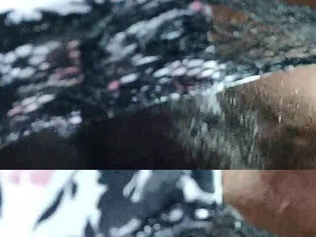 Black trans babe tugging cock in stockings