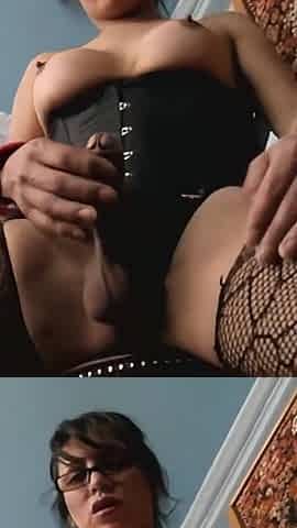 Sexy Shemale With Big Tits Jerking Her Huge Cock Off
