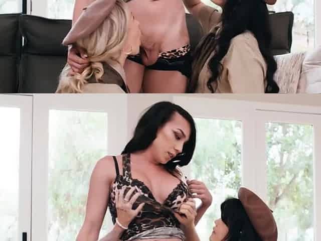2 Hot Tranny Does 3some Screw with Biggest Knobs